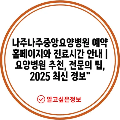 ✅ 나주나주중앙요양병원에서의 진료 시간과 예약 방법을 알아보세요.