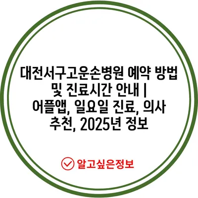 대전서구고운손병원 예약 방법 및 진료시간 공지 | 어플앱, 일요일 진료, 의사 추천, 2025년 정보 에 대해 자주 묻는 질문 TOP 5
