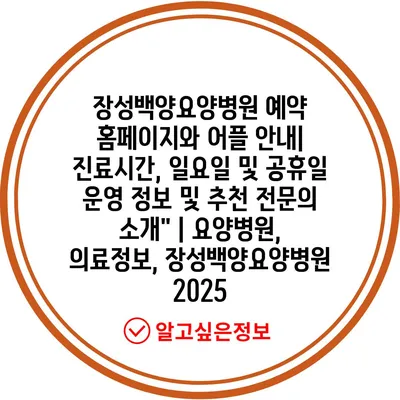 ✅ 장성백양요양병원의 예약 시스템을 자세히 알아보세요.