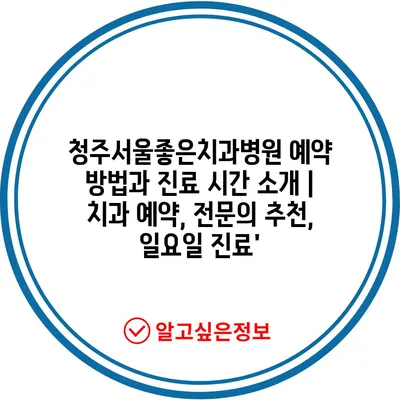 청주서울좋은치과병원 예약 방법과 진료 시간 소개 | 치과 예약, 전연락 추천, 일요일 진료