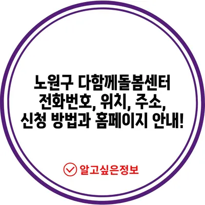 💡 노원구 다함께돌봄센터의 위치와 연락처를 바로 확인해 보세요. 💡