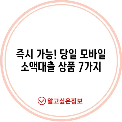 즉시 가능! 당일 모바일 소액대출 상품 7가지
