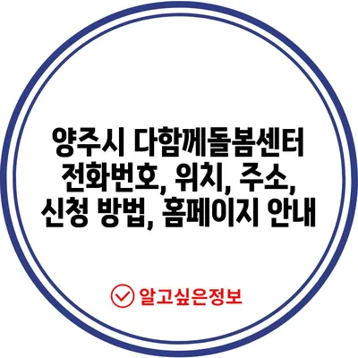 💡 양주시 다함께돌봄센터의 모든 정보를 자세히 알아보세요. 💡