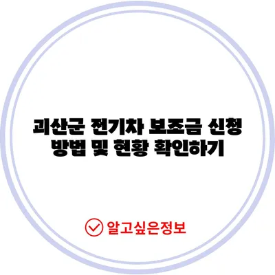 💡 괴산군 전기차 보조금 신청 방법을 지금 알아보세요! 💡