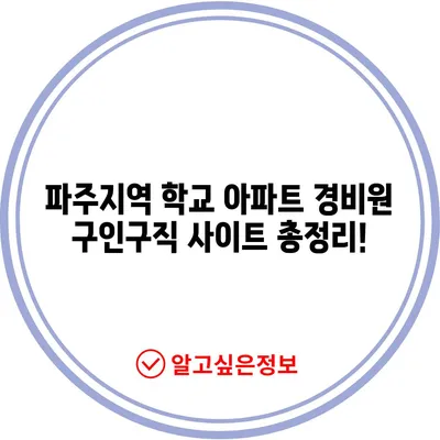 💡 파주지역 학교 아파트 경비원 채용 정보를 지금 바로 확인해 보세요. 💡