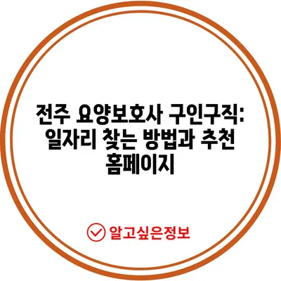 💡 전주에서 최적의 요양보호사 일자리를 찾는 방법을 알아보세요. 💡