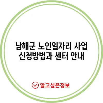 남해군 노인일자리 사업 신청방법과 센터 안내