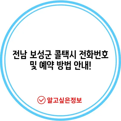 💡 보성군 콜택시 예약 방법을 간편하게 알아보세요. 💡
