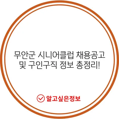 💡 무안군 시니어클럽의 채용 정보와 지원 방법을 자세히 알아보세요! 💡