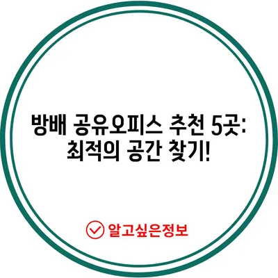방배 공유오피스 추천 5곳: 최적의 공간 찾기!