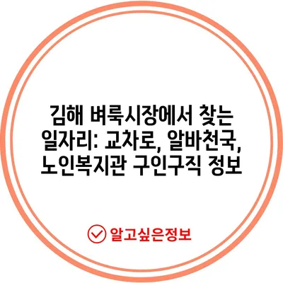 김해 벼룩시장에서 찾는 일자리: 교차로, 알바천국, 노인복지관 구인구직 정보