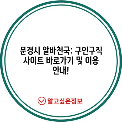 문경시 알바천국: 구인구직 사이트 바로가기 및 이용 안내!