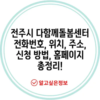 💡 전주시 다함께돌봄센터의 자세한 위치와 정보를 알아보세요. 💡