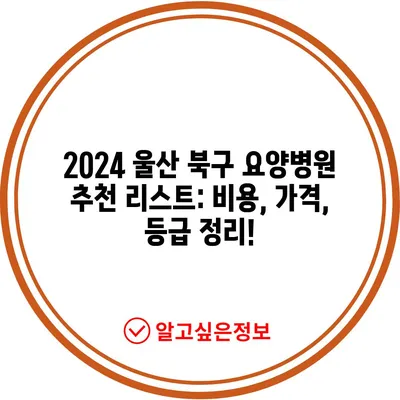 💡 2024 울산 북구 요양병원의 비용과 등급을 자세히 알아보세요! 💡
