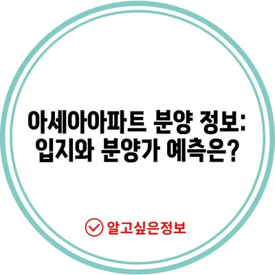 아세아아파트 분양 정보: 입지와 분양가 예측은?