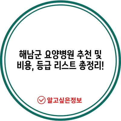 💡 해남군 요양병원의 비용과 등급 정보를 상세히 알아보세요. 💡