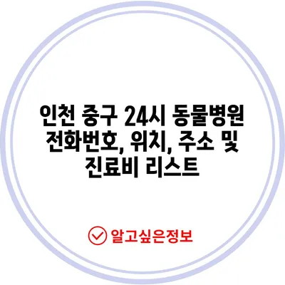 인천 중구 24시 운영 동물병원 리스트와 전화번호, 위치, 주소, 진료비를 알아보세요.