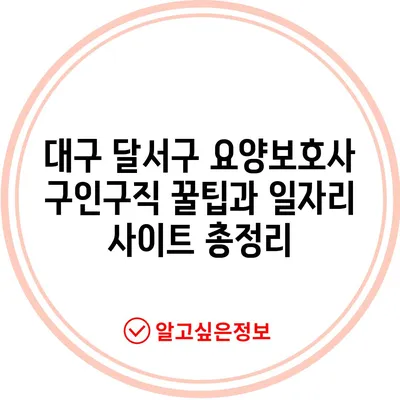 💡 대구 달서구에서의 요양보호사 일자리 정보와 꿀팁을 지금 바로 확인해 보세요! 💡