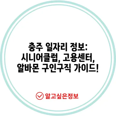 충주 일자리 정보: 시니어클럽, 고용센터, 알바몬 구인구직 가이드!