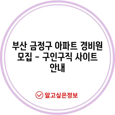 부산 금정구 아파트 경비원 모집 – 구인구직 사이트 안내