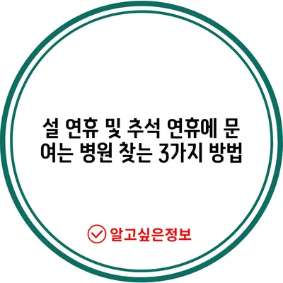 설연휴와 추석연휴에 문 여는 병원을 찾는 방법을 알아보세요. 3가지 방법을 통해 쉽고 빠르게 검색할 수 있습니다.