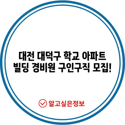 💡 대전 대덕구 학교 아파트 빌딩 경비원 채용 정보를 지금 바로 확인해 보세요. 💡