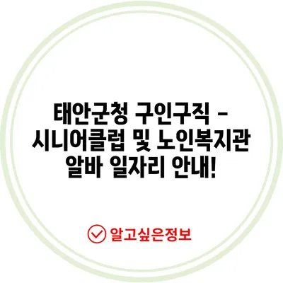 태안군청 구인구직, 시니어클럽과 노인복지관의 일자리 정보, 그리고 서산교차로의 알바 기회를 자세하게 알아보세요.