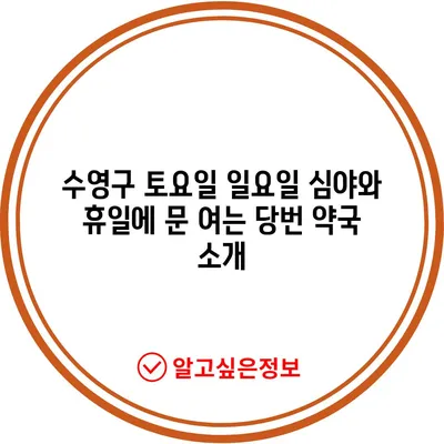 💡 수영구 당번 약국의 운영 시간과 위치를 쉽게 찾아보세요. 💡