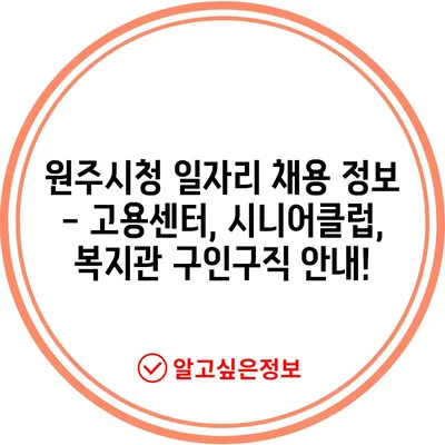 Meta Description: 원주시청 홈페이지 채용, 고용센터, 시니어클럽, 노인종합복지관 일자리를 통한 원주 지역의 다양한 구인구직 정보에 대해 알아보세요.