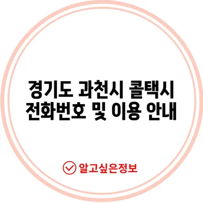 경기도 과천시 콜택시 전화번호를 안내합니다. 다양한 콜택시의 전화번호와 부르는 방법을 포함해 방문객에게 유용한 정보를 제공합니다.