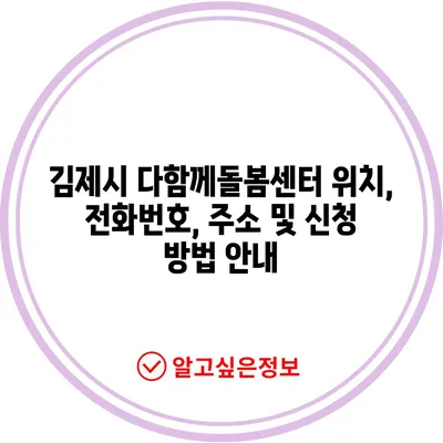 💡 김제시 다함께돌봄센터의 위치와 신청 방법을 자세히 알아보세요. 💡
