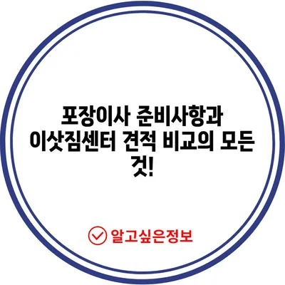 포장이사 준비사항과 이삿짐센터 견적 비교의 모든 것!