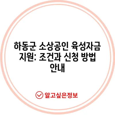 💡 하동군 소상공인 육성자금의 조건과 신청 방법을 자세히 알아보세요. 💡