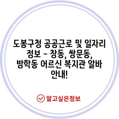 💡 도봉구청 공공근로와 알바 정보, 확인해 보세요! 💡
