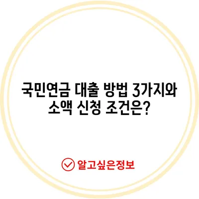 메타 디스크립션: 국민연금 대출 방법 3가지를 자세히 알아보고, 각 방법의 소액 신청 조건을 확인해보세요. 연금 대출의 모든 것을 설명합니다.