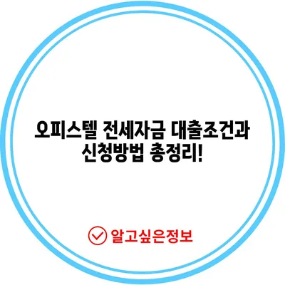 💡 오피스텔 전세자금 대출의 모든 조건을 한눈에 알아보세요! 💡